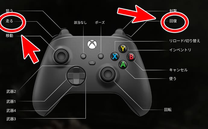 ちなみにXboxコントローラーだとダッシュはL1で、回復はR1長押しでした。