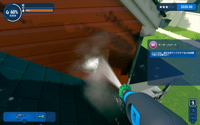 依頼をクリアして金をため、高圧洗浄機をアップグレードしたりします。