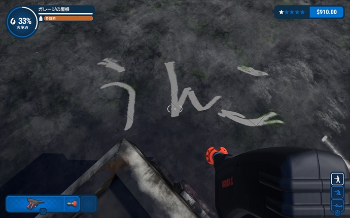 ゲームの流れとしては、一応ステージ選択制となっていて、汚れた対象物を、ひたすら高圧洗浄マシンで水をかけながら洗っていく。